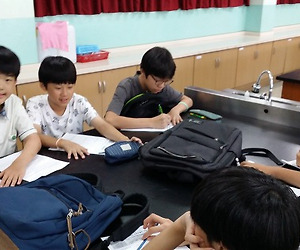 ▲ 활동지를 열심히 풀고 있는 모습. 창의적으로 문제를 해결하는 모습이 보인다.